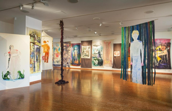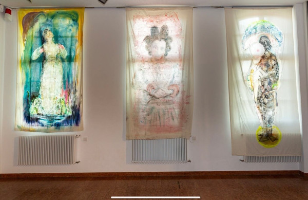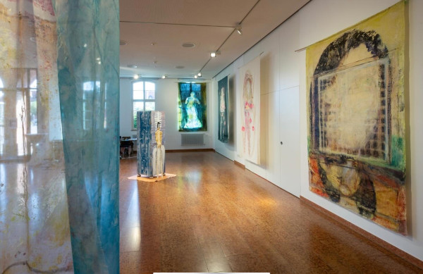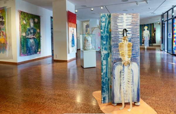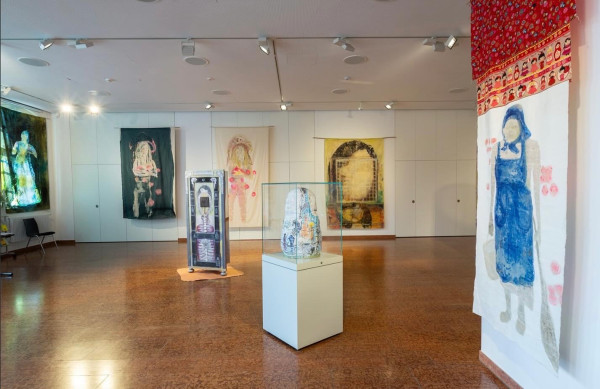 Mittelpunkt der in drei Segmenten aufgeteilten Hanauer Ausstellung wird das Foyer des Neustädter Rathauses am Markt bilden. Großformatige Textilarbeiten, Keramiken, ein zum Zopf geflochtener Afghan-Teppich, ein bemalter und verspiegelter Dreiecksschrank, ein durchscheinender Paravent sowie ein Performance-Video laden die Besucher- innen und Besucher ein, durch eine interaktive, Märchen und Mythen bezogene Rauminstallation zu wandeln.
