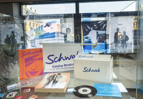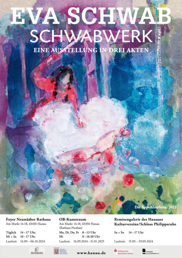 Vor dem Büro des Hanauer Oberbürgermeisters im ersten Stock des Rathauses erschafft Eva Schwab den „OB Kunstraum,“ der einen Rückblick auf die Geschichte des Schwab-Versands als malerische Chronik (von 1955–2015) in Gemälden und dokumentarischem Material aus dem Archiv der Firma anlegt. Hier wird die Zeitgeschichte, insbesondere die Jahre des Wirtschaftswunders, in dem die Stadt Hanau als ehemaliger Standort des Schwab-Versands eine herausgehobene Rolle spielte, in gemalten Collagen nachgezeichnet.
