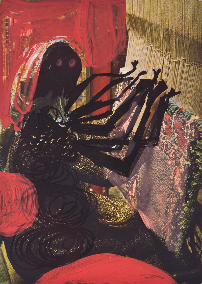 , 2017, Drawing, 21 x 15 cm, ink, postcards, oil