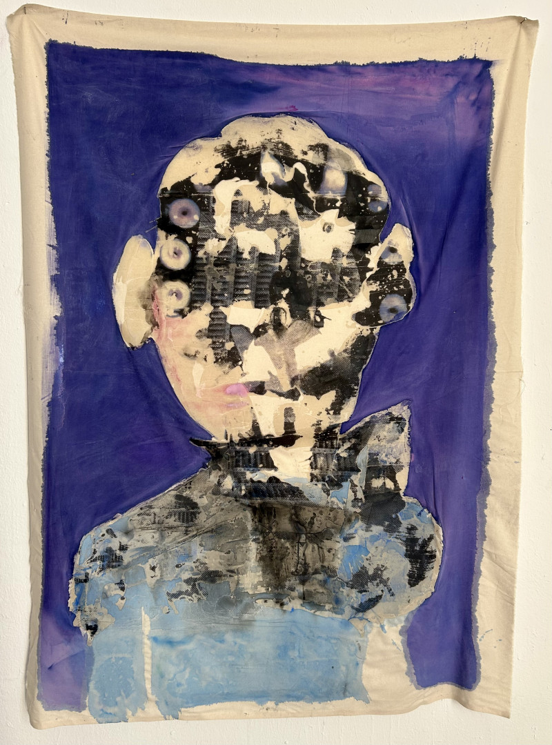 , 2025, Fabric, 150 x 105 cm, wax, oil, ink